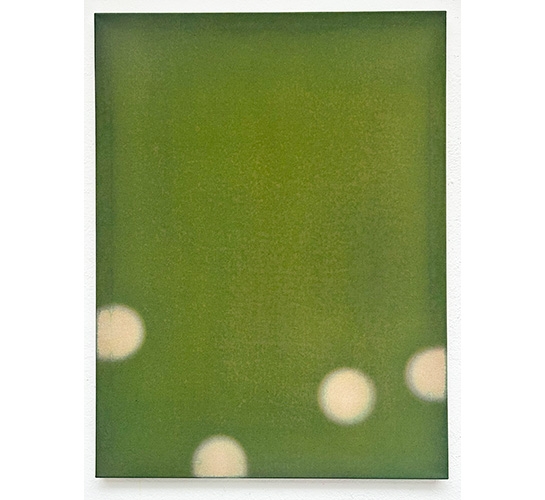 Wonkun Jun's paintings consist of up to fifty layers of watery thin acrylic paints. He is a master of application and removal. This enables him to create profound areas of color. Circular fields sometimes draw the eye into the depths. In his latest paintings, the structure of the canvases can be seen through the velvety-looking final layer of paint. Some of the paintings created in the summer are a touchingly beautiful green. In the dark season, they seem to point to the approaching spring.