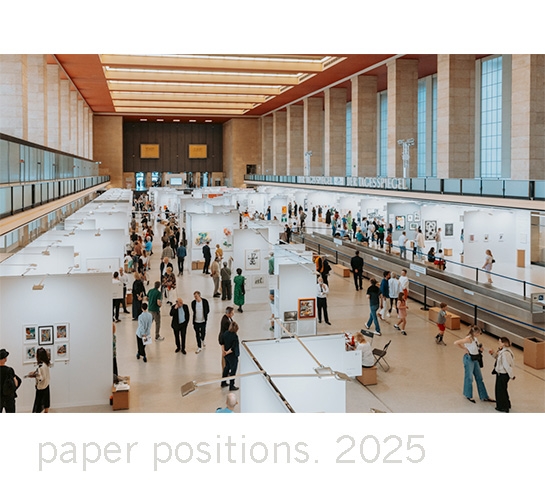 Visit us from April 30 to May 3 at the 10th edition of paper positions berlin. The fair for contemporary works on paper takes place alongside Gallery Weekend in the historic main hall of Tempelhof Airport.