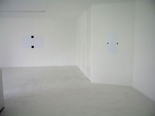 Durch den vierten Teil des Höhen- und Längenmasses einer Wand werden Höhe und Breite einer Fläche bestimmt, die über dem Schnittpunkt der beiden Diagonalen zentral auf der Wand liegt. Da im Falle der Ausstellung alle fünf Wände gleich hoch aber unterschiedlich breit sind, entstehen fünf rechteckige Flächen, die ihrerseits das gleiche Höhenmaß aufweisen, in der Breite hingegen variieren.